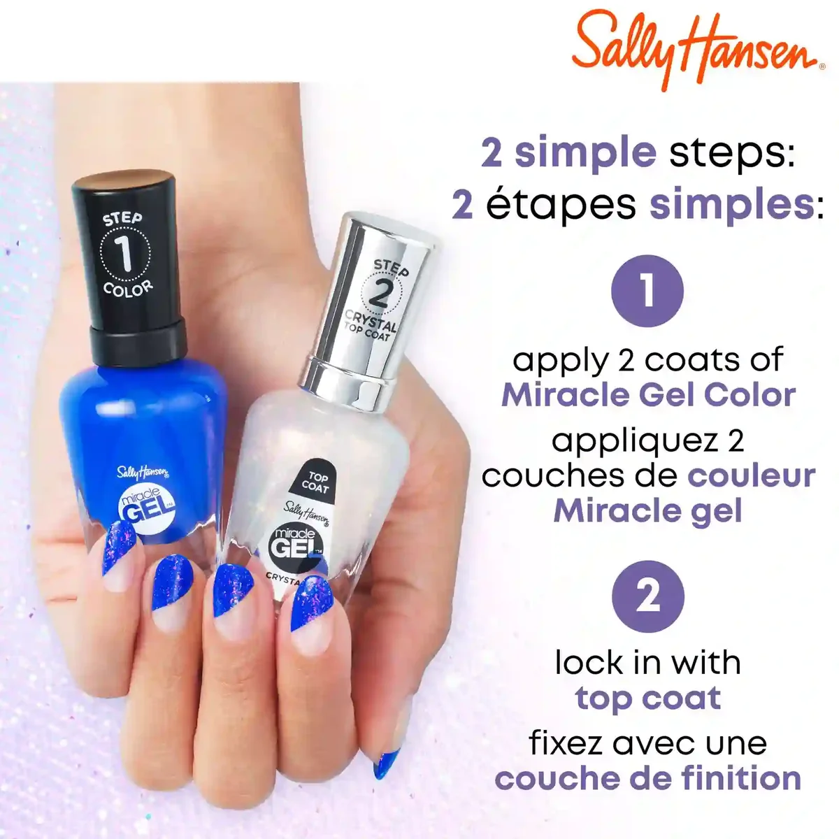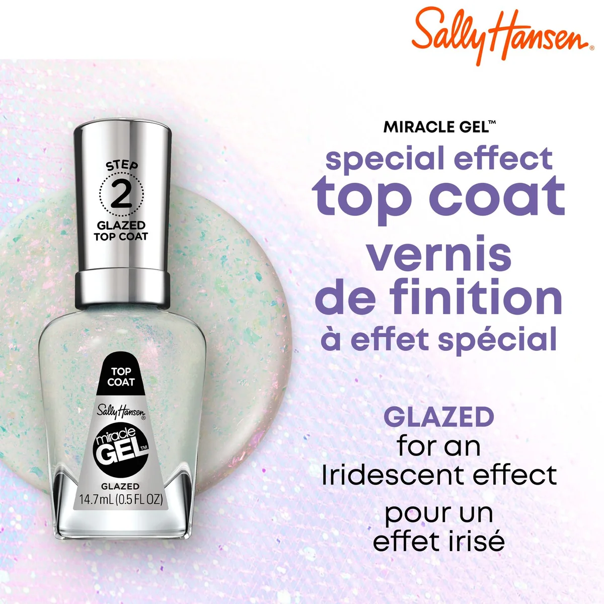 Lock in your manicure with the Sally Hansen Miracle Gel Top Coat, the final step to achieving a salon-quality gel look at home. This volumizing top coat mimics the strength and high-shine finish of a professional gel manicure, but without the need for a UV/LED lamp or harsh soak-off removal.