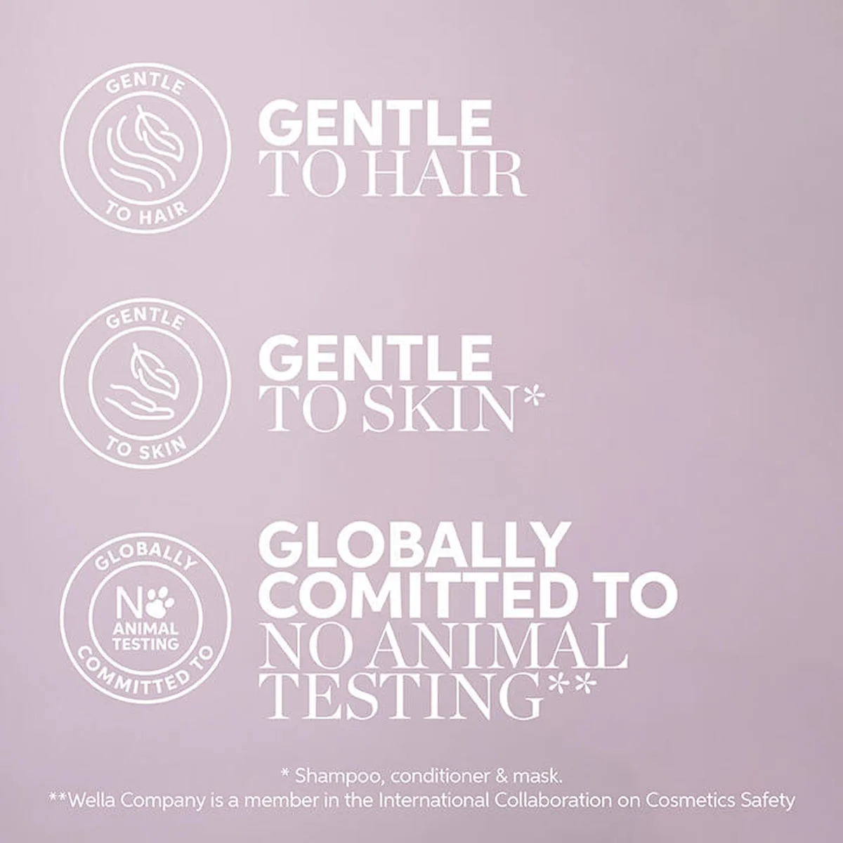 The formula is supercharged with the renowned WellaPlex Bonding Agent, which actively reconstructs broken inner hair bonds to make strands stronger and more resilient against breakage. It works in harmony with a Hair Surface Polisher that smooths the cuticle for dazzling light reflection. Designed to encapsulate metals and protect against free radicals, it delivers up to 8 weeks of color protection while leaving hair significantly stronger from root to tip.